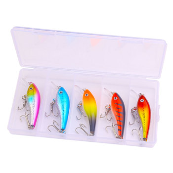 Conjunto de Señuelos de Pesca de pececillo cebos de plástico duro artificiales al por mayor combo de 7,5 cm, 5,1G, 5 unidades/caja